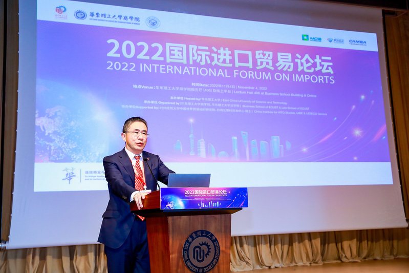 在第五届中国国际进口博览会盛大开幕之际,2022(第五届)国际进口贸易论坛于11月4日在华东理工大学举办。正值华理建校70周年之际,来自国际组织、中国政府、学界和业界的专家学者相聚“云端”,以线上线下相结合的形式,共同围绕“新发展格局下贸易与制度型开放”这一主题进行研讨交流,线上直播观看量10万余人次。华东理工大学党委书记杜慧芳出席会议并致辞,论坛由副校长阎海峰主持。