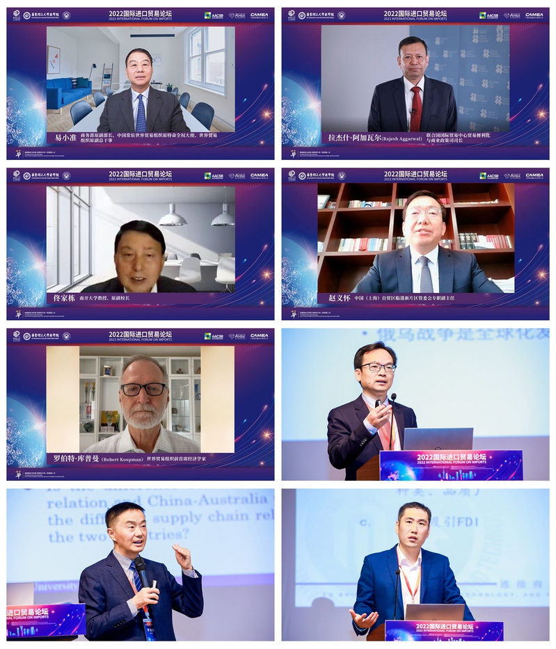 主论坛上,商务部原副部长、中国常驻世界贸易组织原特命全权大使、世界贸易组织原副总干事易小准,联合国国际贸易中心贸易便利化与商业政策司司长拉杰什·阿加瓦尔,南开大学教授、原副校长佟家栋,中国(上海)自贸区临港新片区管委会专职副主任赵义怀,世界贸易组织前首席经济学家罗伯特·库普曼,对外经贸大学中国WTO研究院教授、院长屠新泉,复旦大学经济学院教授、上海世界经济学会会长罗长远,华理商学院特聘研究员车翼分别就“开放共赢”“全球贸易开放”“数字经贸”“开放型经济体制”“贸易政策”“全球产业链”“国际供应链”“进口贸易”等议题发表主旨演讲。